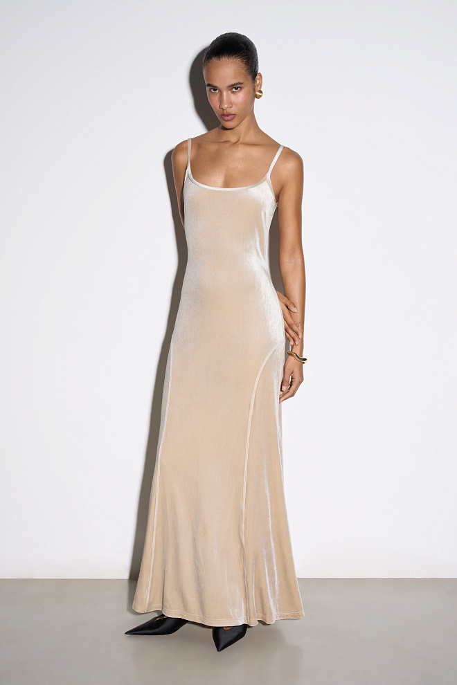 Velvet dress with a deep backless neckline