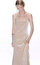 Velvet maxi length dress made of polyamide with added viscose. The model has a fitted silhouette, sleeveless, thin adjustable straps and a deep cutout at the back.