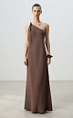 Maxi length dress made of 100% linen. The model has an asymmetrical cut, with a twisted strap on one shoulder. Side slit.