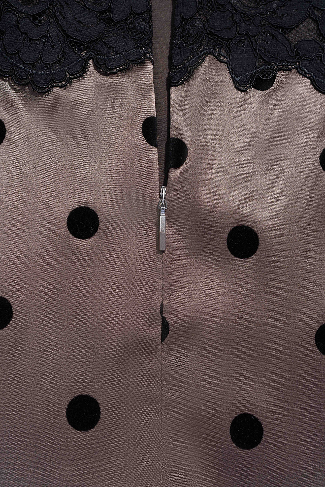 Polka-dotted satin slip dress