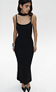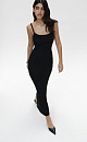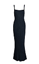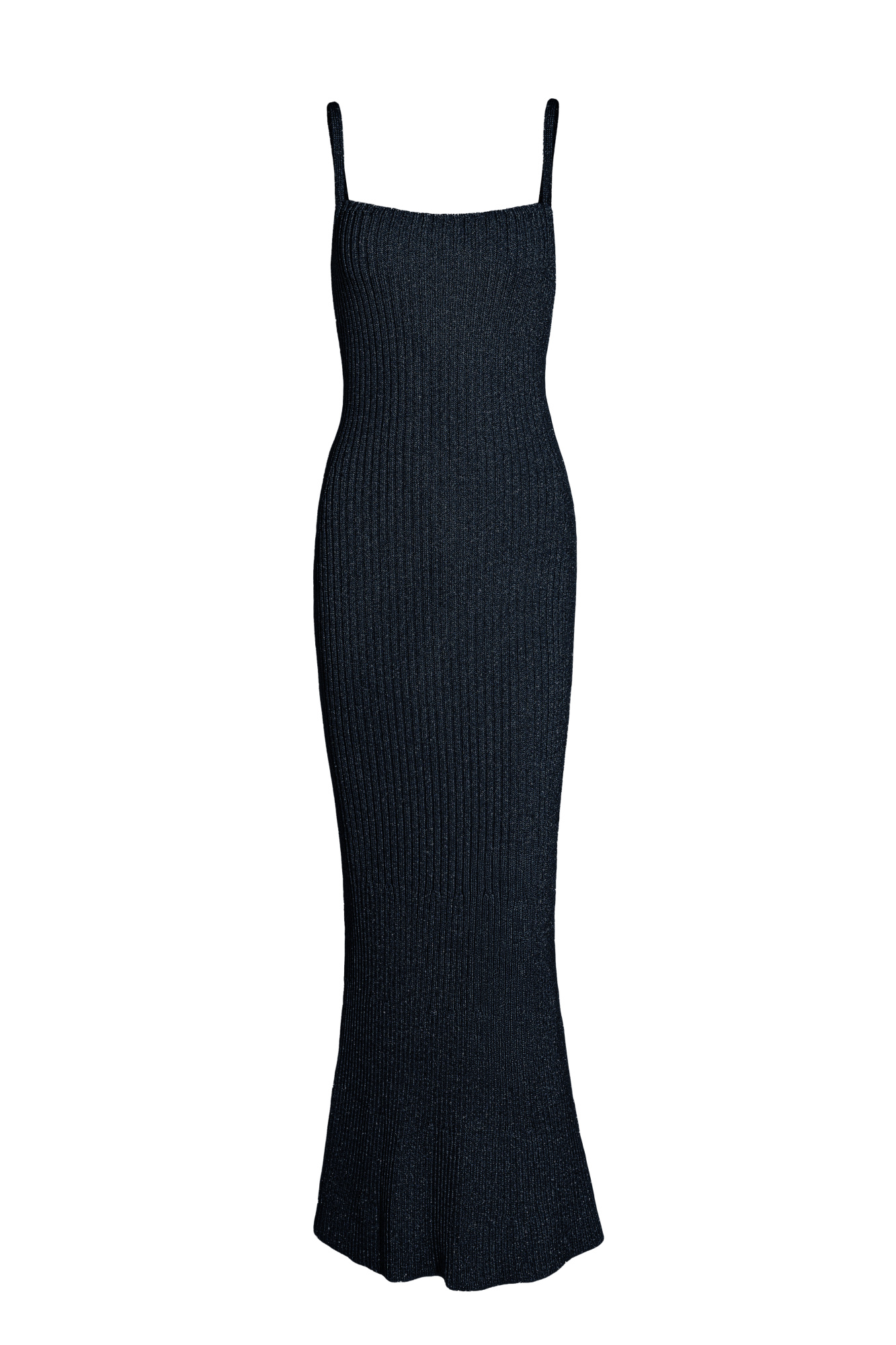 Sundress with lurex on thin straps. The model has a fitted maxi length silhouette and is made of material with a metallic sheen effect.