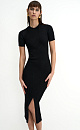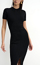 Wide ribbed knitted dress with a twist at the back and a slit at the front.