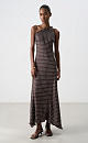Printed midi dress made of 100% viscose. This fitted, sleeveless dress features a twisted one-shoulder strap and a slightly flared, flowing skirt. Printed midi dress made of 100% viscose. This fitted, sleeveless dress features a twisted one-shoulder strap and a slightly flared, flowing skirt.