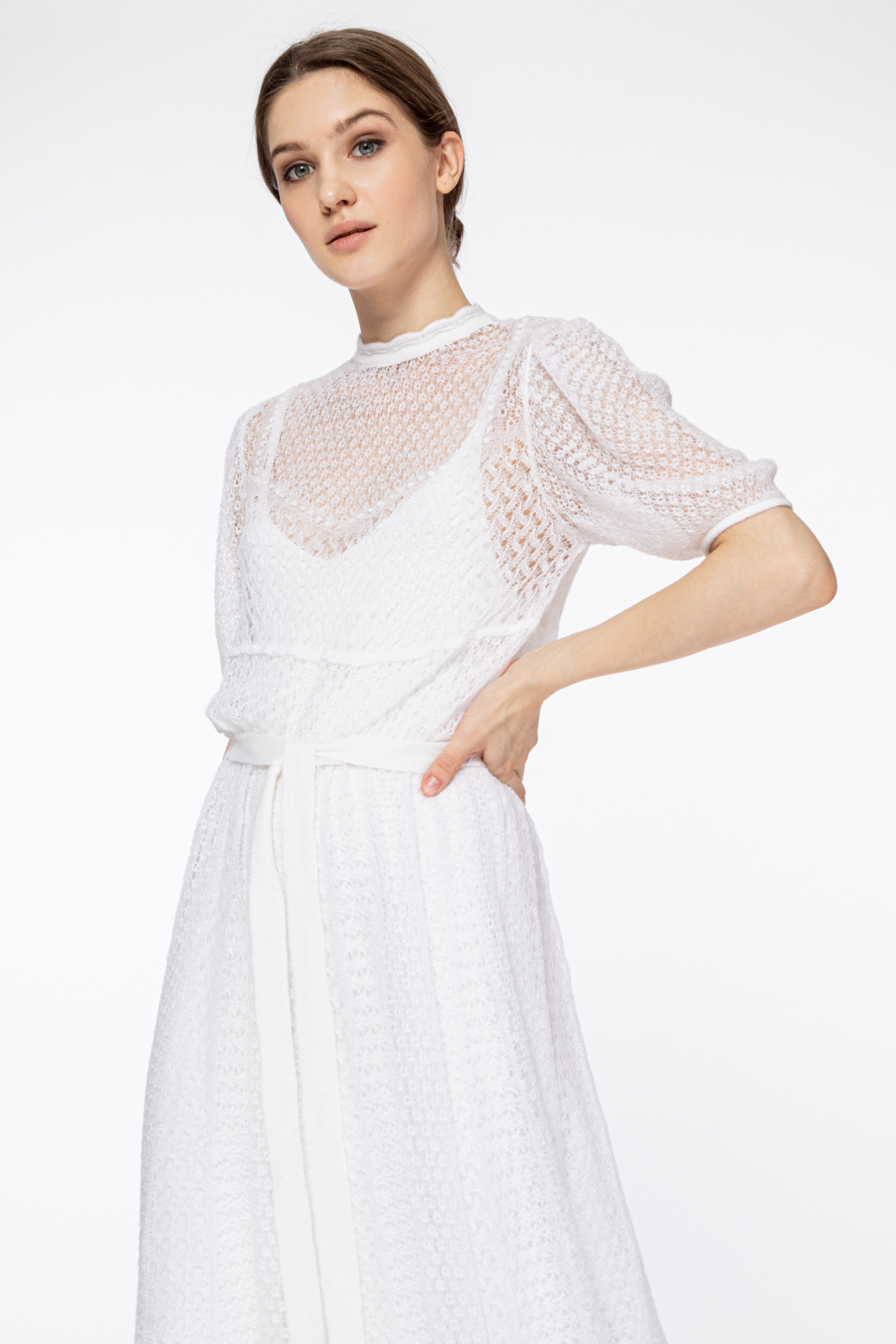 Moher's openwork dress. The lower dress is included with it. Short sleeve-background.