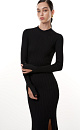 Knitted viscose dress with long sleeves flared at the bottom. Slits on the sleeves and on the left side.