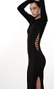 Knitted viscose midi dress with slits and laces on the sides. Features long sleeves and a V-neck.