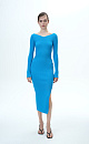 Knitted viscose midi dress with slits and laces on the sides. Features long sleeves and a V-neck.