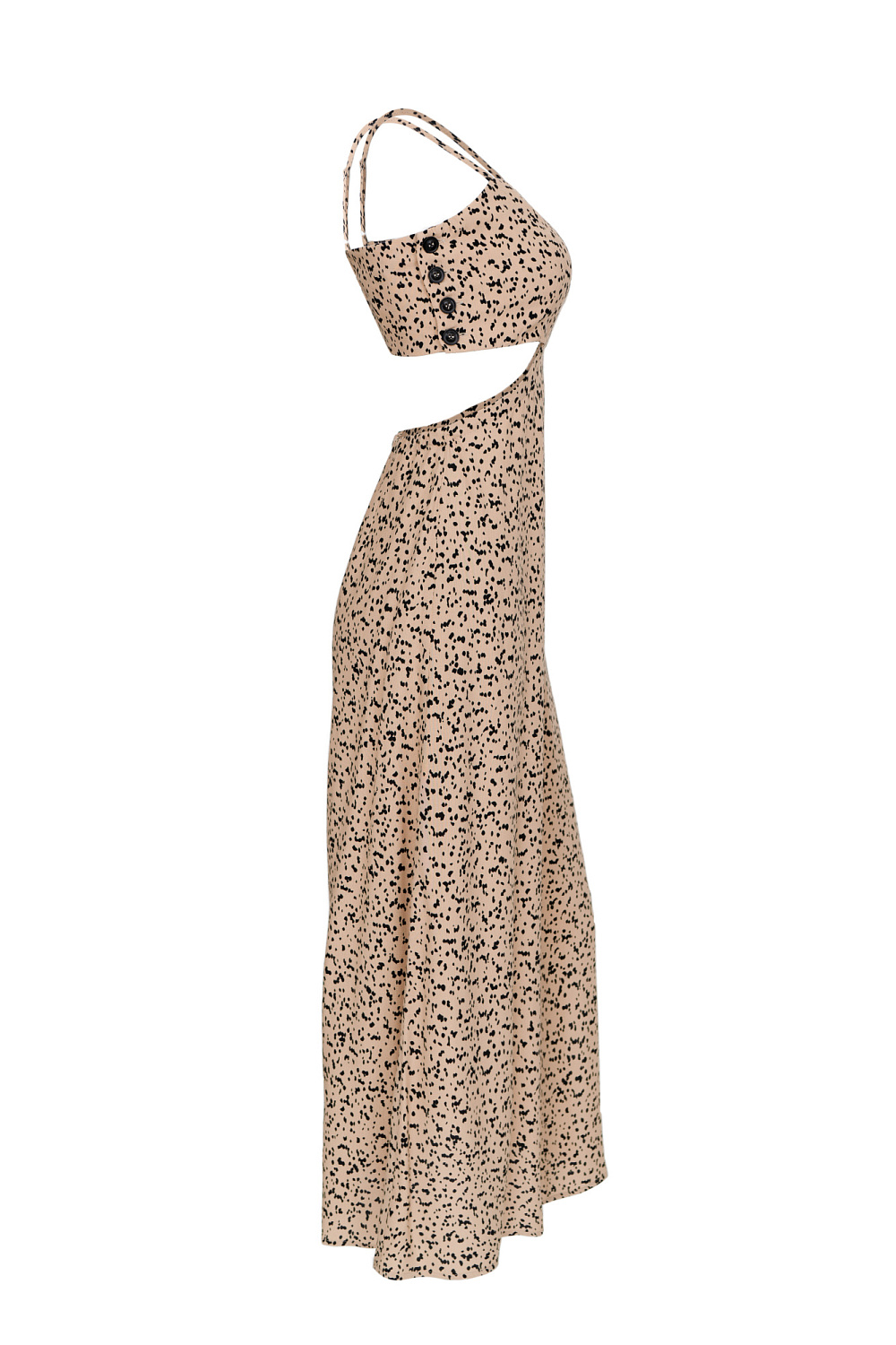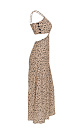 Printed dress in 100% viscose. The top of the dress has slits on the sides and an open back. Features side button fastening and side slit.