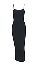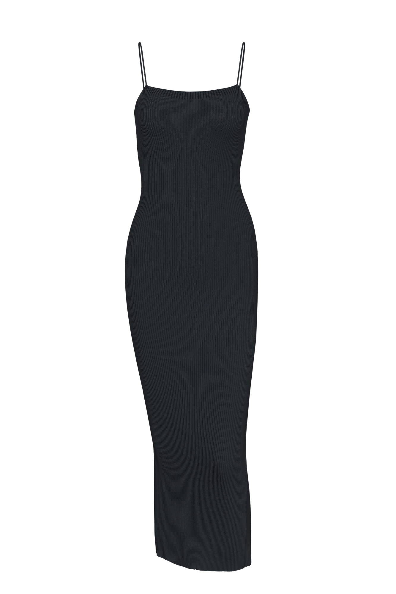 Rib-knit bodycon dress with thin straps and a slit at the back.