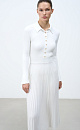 Knitted dress made of viscose and merino wool blend. Pleated midi skirt, turn-down polo collar and button placket at the chest. Long sleeves with slits.