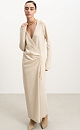Knitted wrap wool dress with the addition of cashmere. Fitted silhouette with V-neck and drawstring.