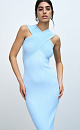 Fitted, ribbed knit dress with a criss-cross neckline and a small slit at the back.