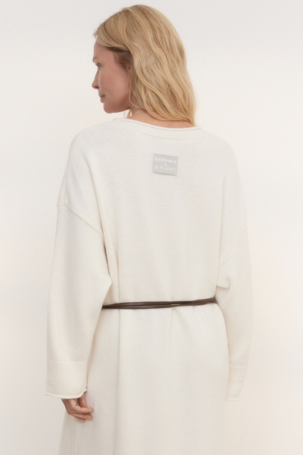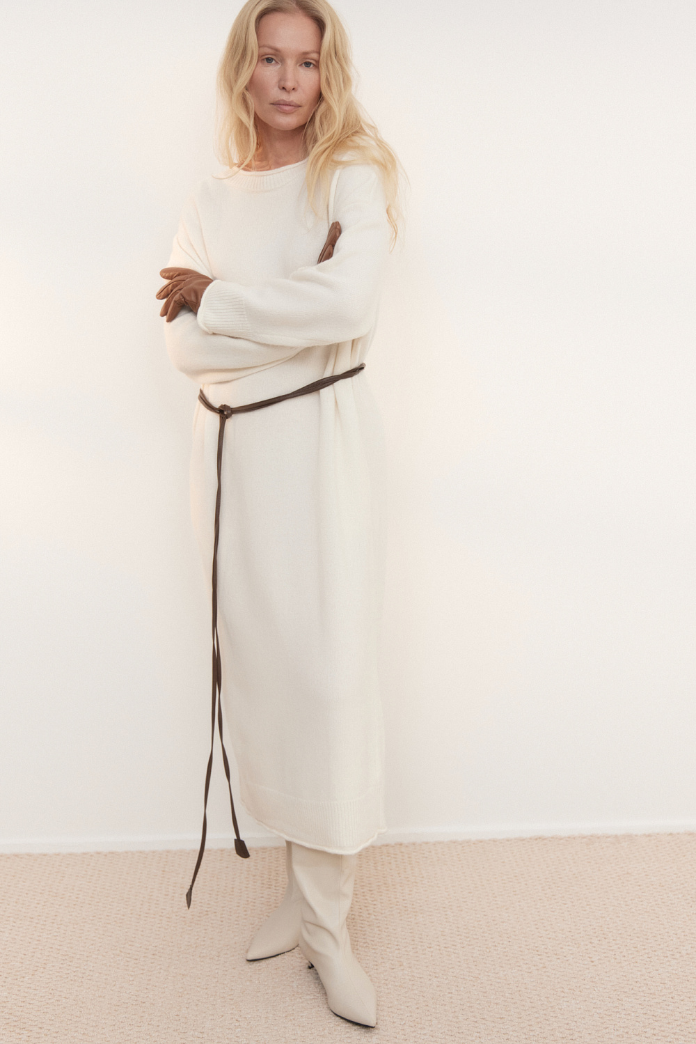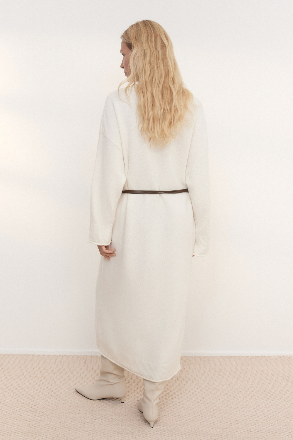 Knitted maxi dress in a wool blend with cashmere added. Loose silhouette model with dropped shoulders and pockets. The edges of the product are ribbed. Branded label on the back.