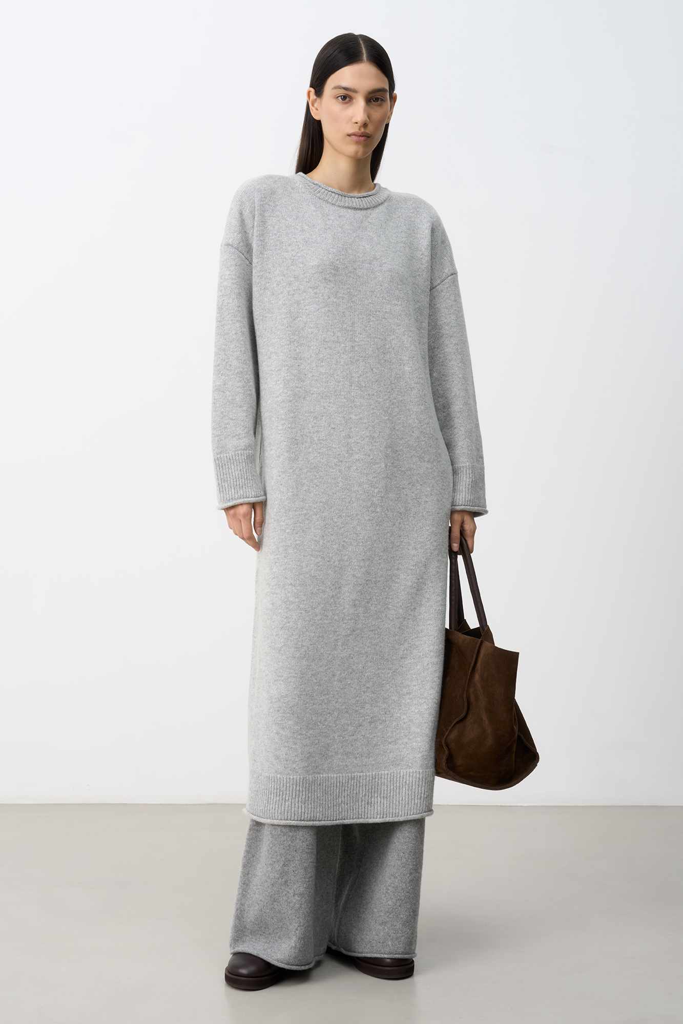 Knitted maxi dress in a wool blend with cashmere added. Loose silhouette model with dropped shoulders and pockets. The edges of the product are ribbed. Branded label on the back.