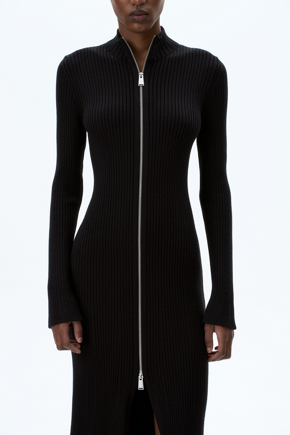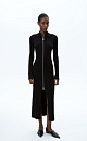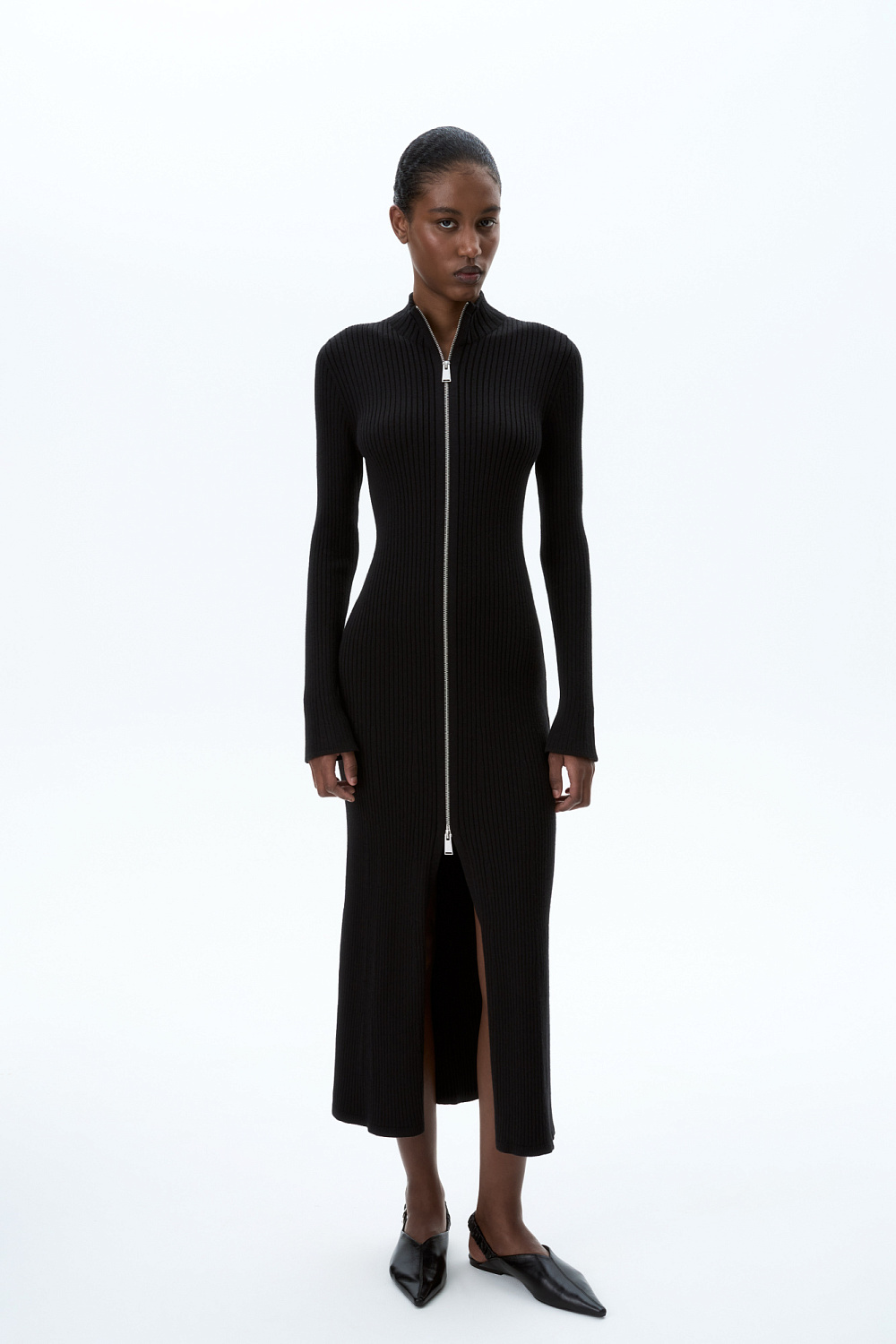 Wool blend knitted dress. Fitted midi dress with a high front slit and zip fastening.