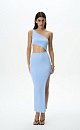 One-shoulder midi dress. Fitted silhouette with a slit at the side and a cutout at the waist.