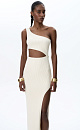 One-shoulder midi dress. Fitted silhouette with a slit at the side and a cutout at the waist.