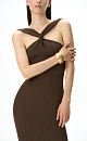 Fitted knit midi dress with double twist at the chest and open shoulders
