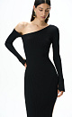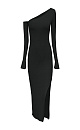 Fitted long sleeve viscose dress with open shoulder and side slit