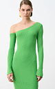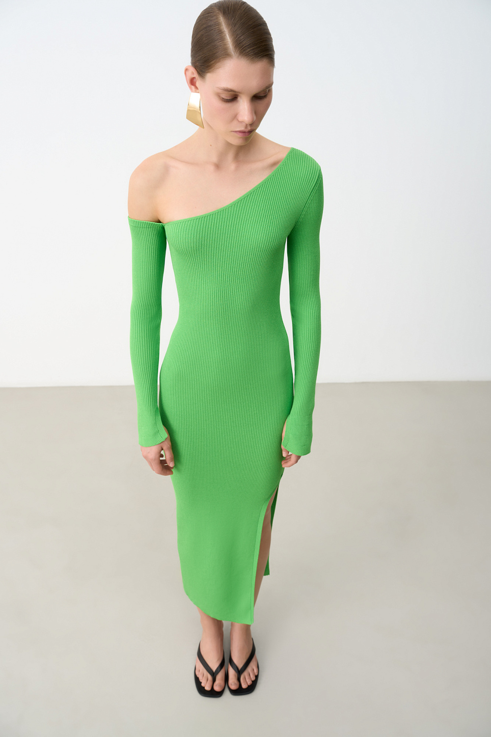 Fitted long sleeve viscose dress with open shoulder and side slit