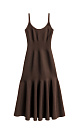 A midi-length knit dress made of viscose. It features a fitted silhouette, a flared skirt with soft pleats, sleeveless design, and narrow straps. Zip closure at the back.
