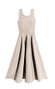 Knitted midi-length dress with lurex. A fitted model with a skirt flared from the waist, sleeveless, with wide straps.
