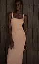Knitted sundress made of cotton with the addition of viscose. Model of a fitted silhouette, sleeveless, with straps. The product is made with a wide rib.
