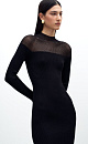 Ribbed fitted viscose dress with a semi-sheer top.