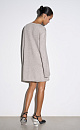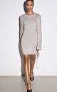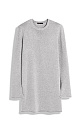 Knitted mini-length dress made of viscose with the addition of lurex. Loose silhouette model with a round neck and long sleeves. The edges of the product are decorated with a roller.