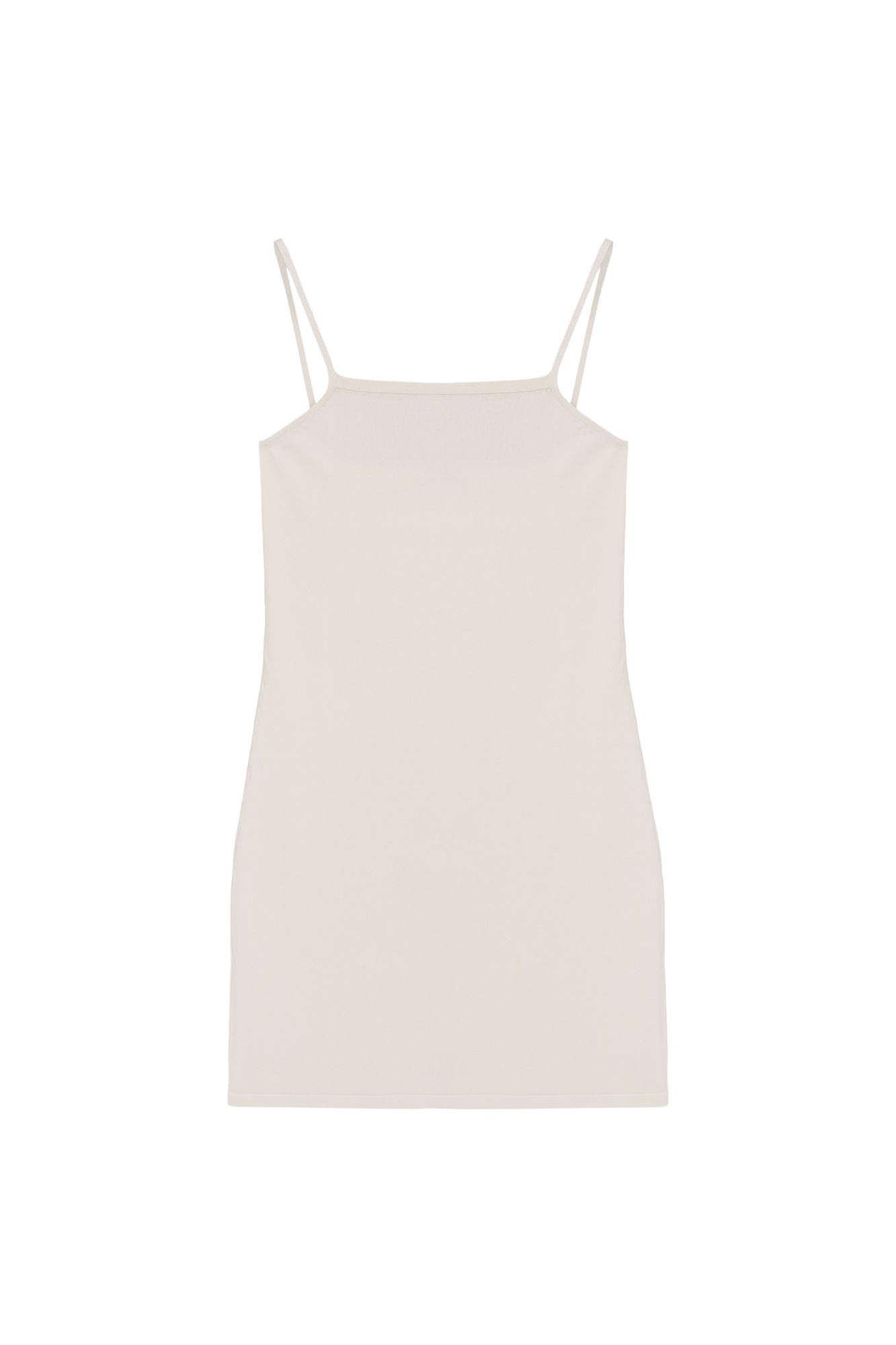 Knit viscose slip dress with thin straps.