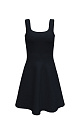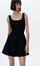 Knit mini dress with wide straps. Round neckline, back zip fastening. The dress is knitted from thick elastic viscose, has a tight silhouette and retains the volume of the skirt.