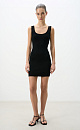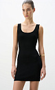 A mini-length knit dress made of viscose. It features a fitted silhouette, a U-neckline, and wide straps.