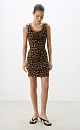 Knitted mini-length dress with a jacquard pattern imitating the color of a leopard. Sleeveless, fitted silhouette with a round neckline. The edges of the product are ribbed.