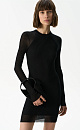 A mini dress in ribbed viscose knit. It features a fitted silhouette, a round neckline, and long, sheer sleeves.