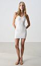 Mini-length dress made of textured viscose jersey. The model has a fitted silhouette, sleeveless, wide straps, and a U-shaped neckline. The product is made with a wide rib.