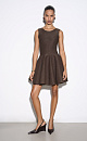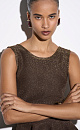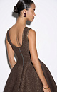 Mini-length knitted dress with lurex. A fitted model with a skirt flared from the waist, sleeveless, with wide straps.