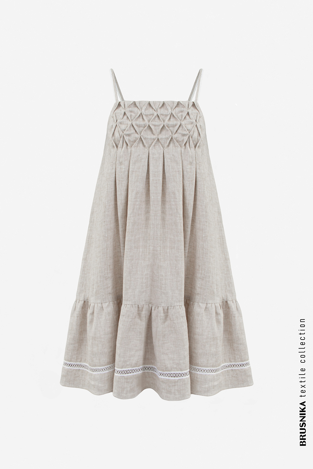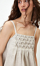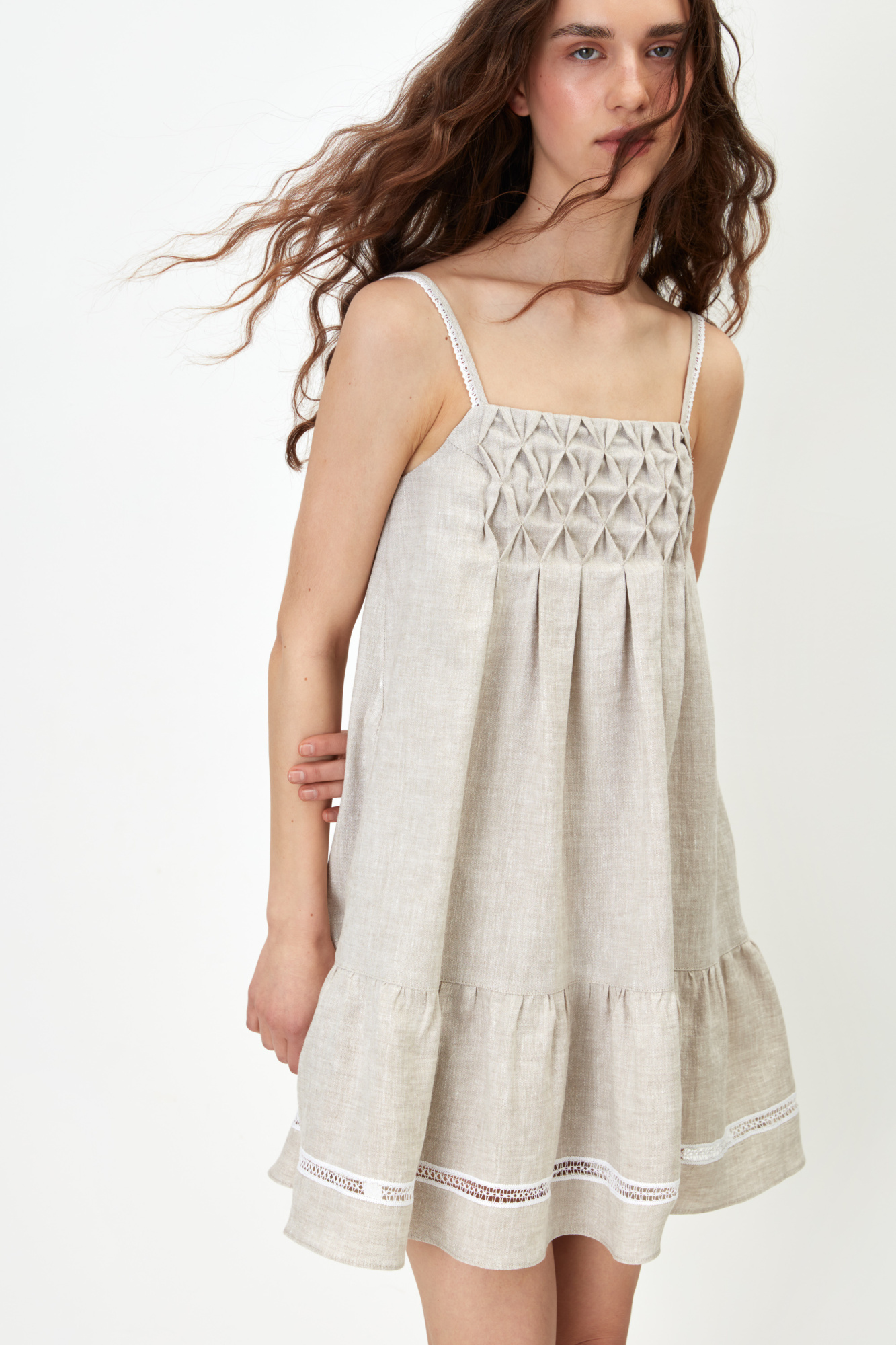 The sundress is 100% linen on thin straps.