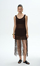 100% knitted mesh summer dress with fringes and eyelets.