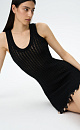 Knit fitted mini dress, decorated with shell trim at the hem.