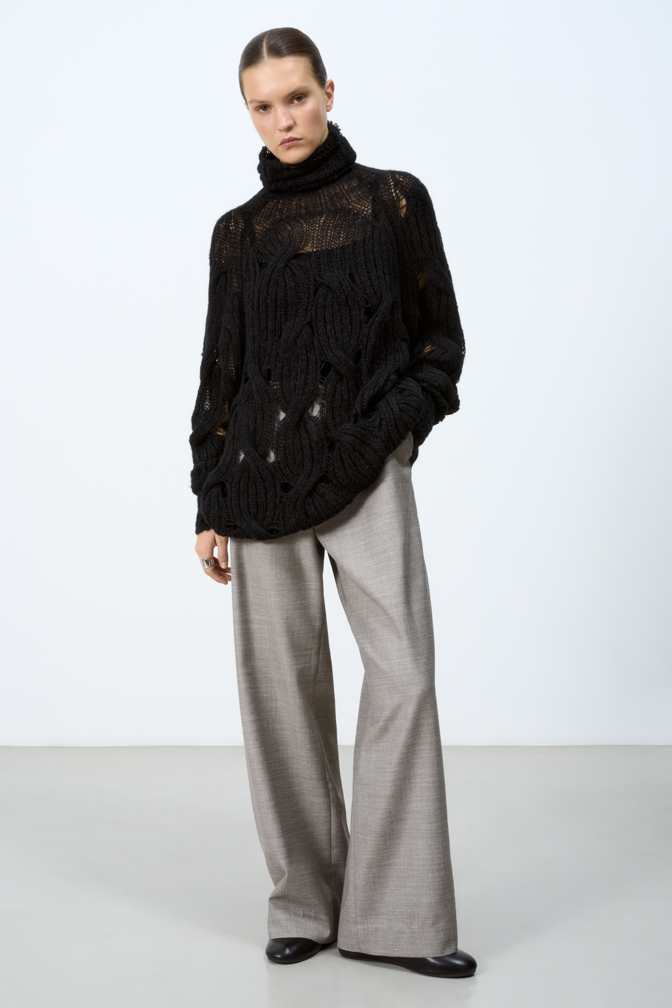 Mohair blend oversized jumper. Features high collar, long sleeves and elastic edges. Lightweight and warm.