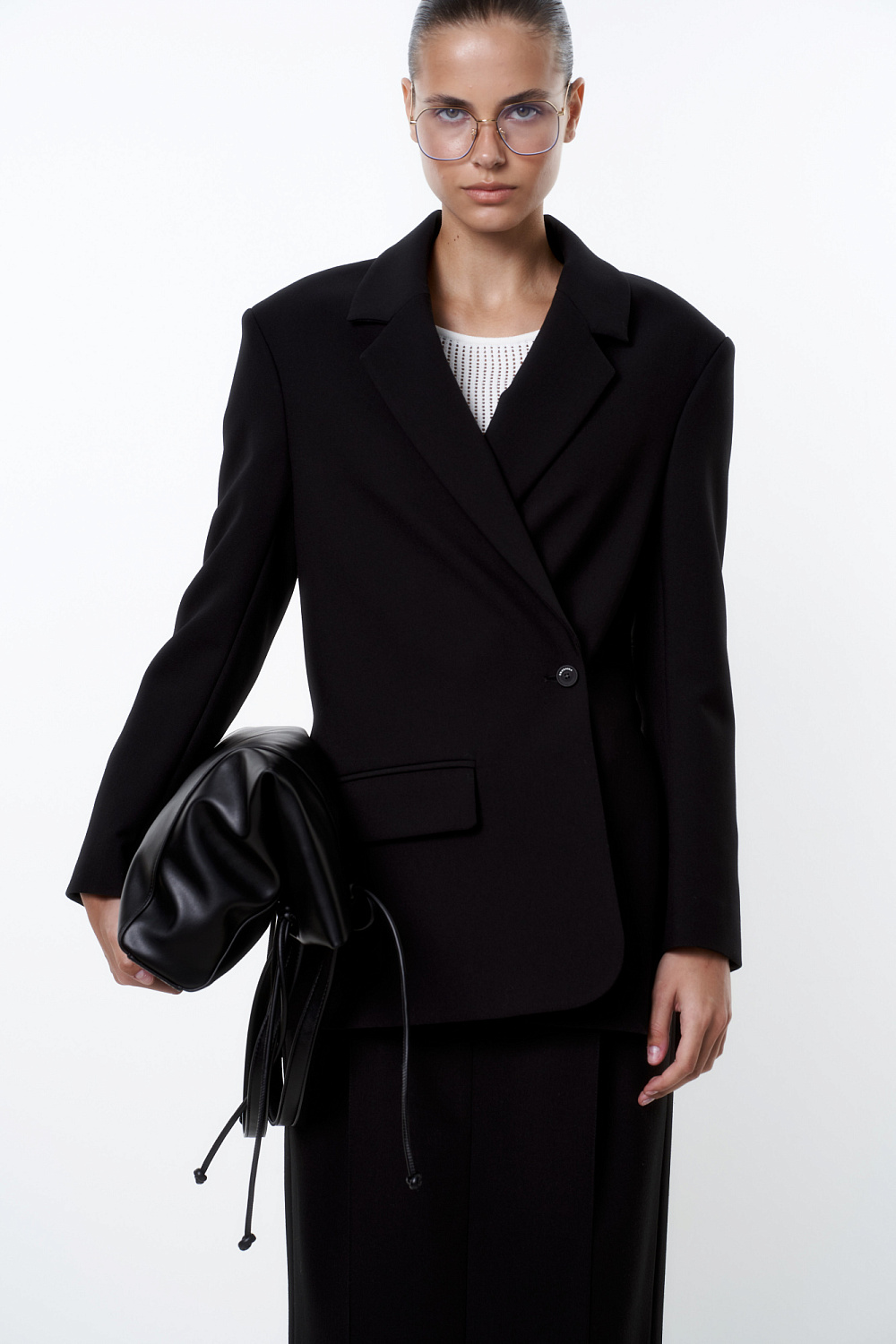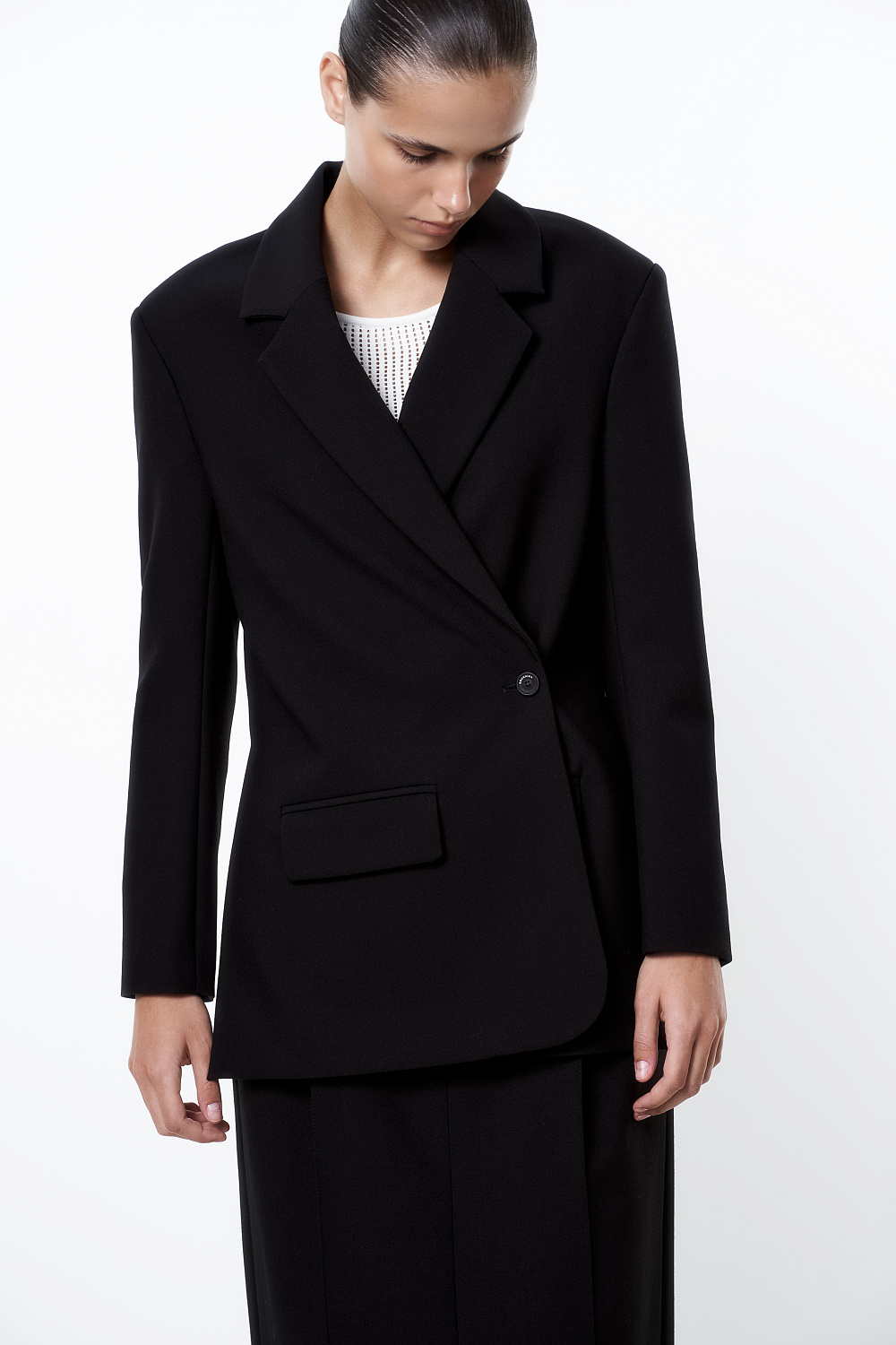 Single-breasted blazer with asymmetrical fastening
