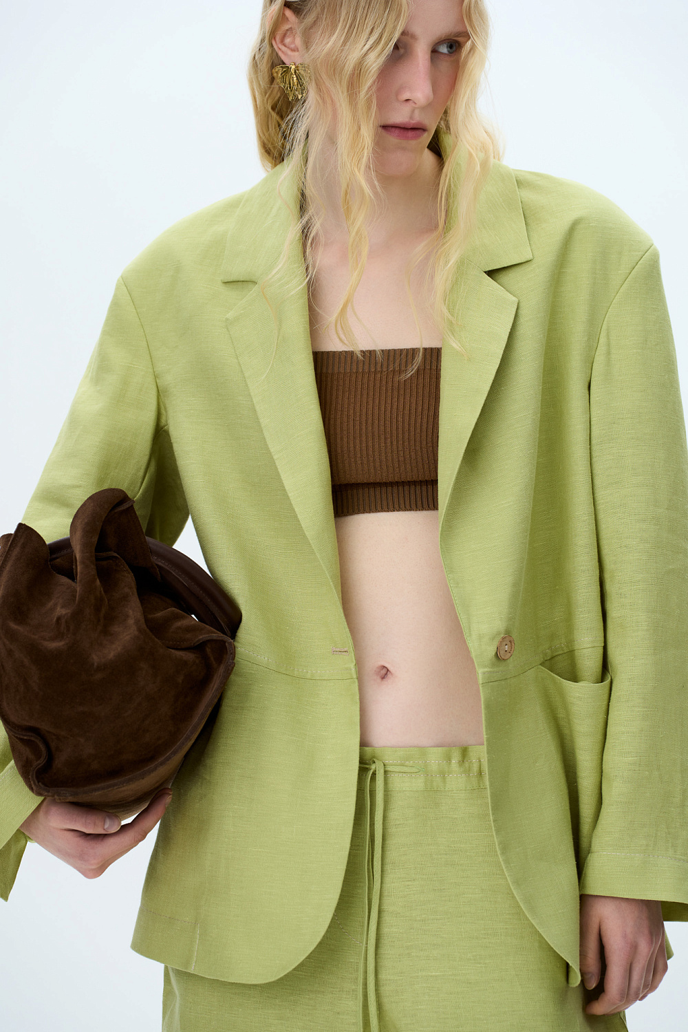 Single breasted linen blazer. Relaxed silhouette, front welt pockets. You can complete the look with matching pants.