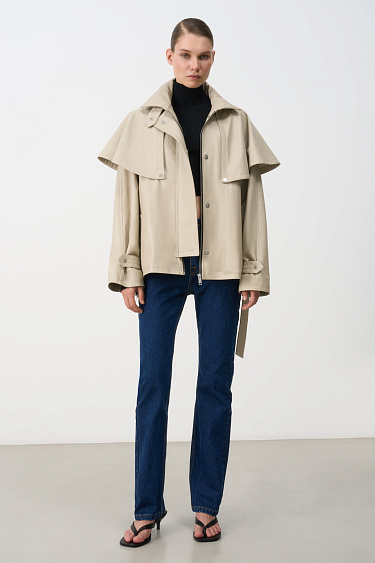 100% cotton straight leg jeans with low rise. The jeans have a slit on the leg and a wide stripe. Zip and button closure.