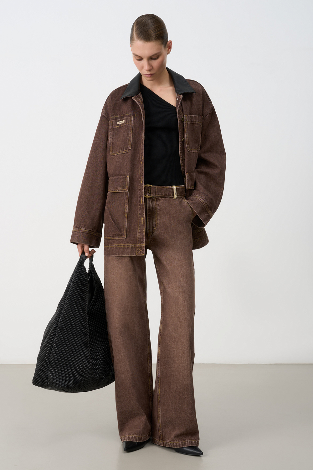 Straight-leg, mid-rise 100% cotton jeans with side pockets. The model is completed with a belt. Zip and button closure.