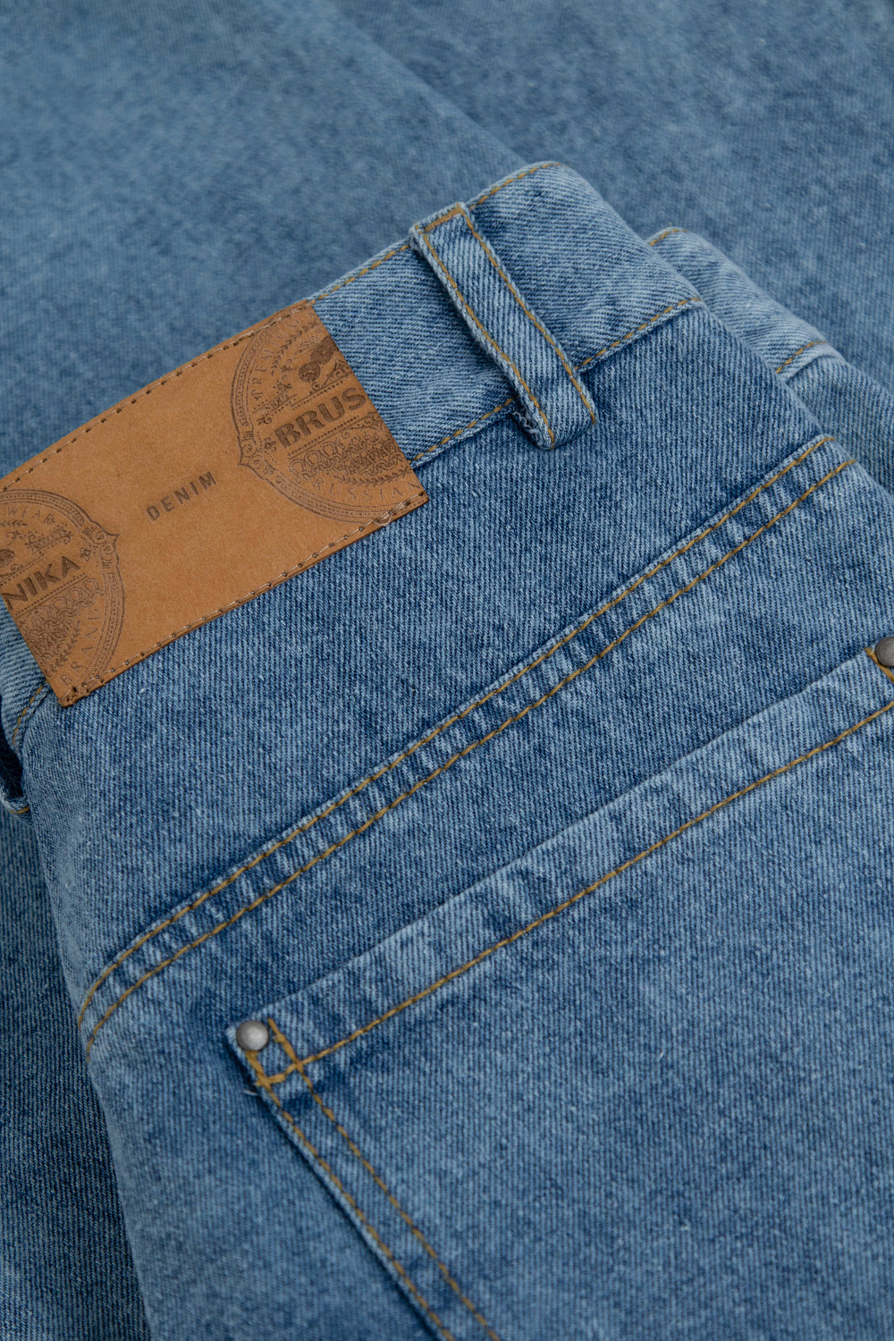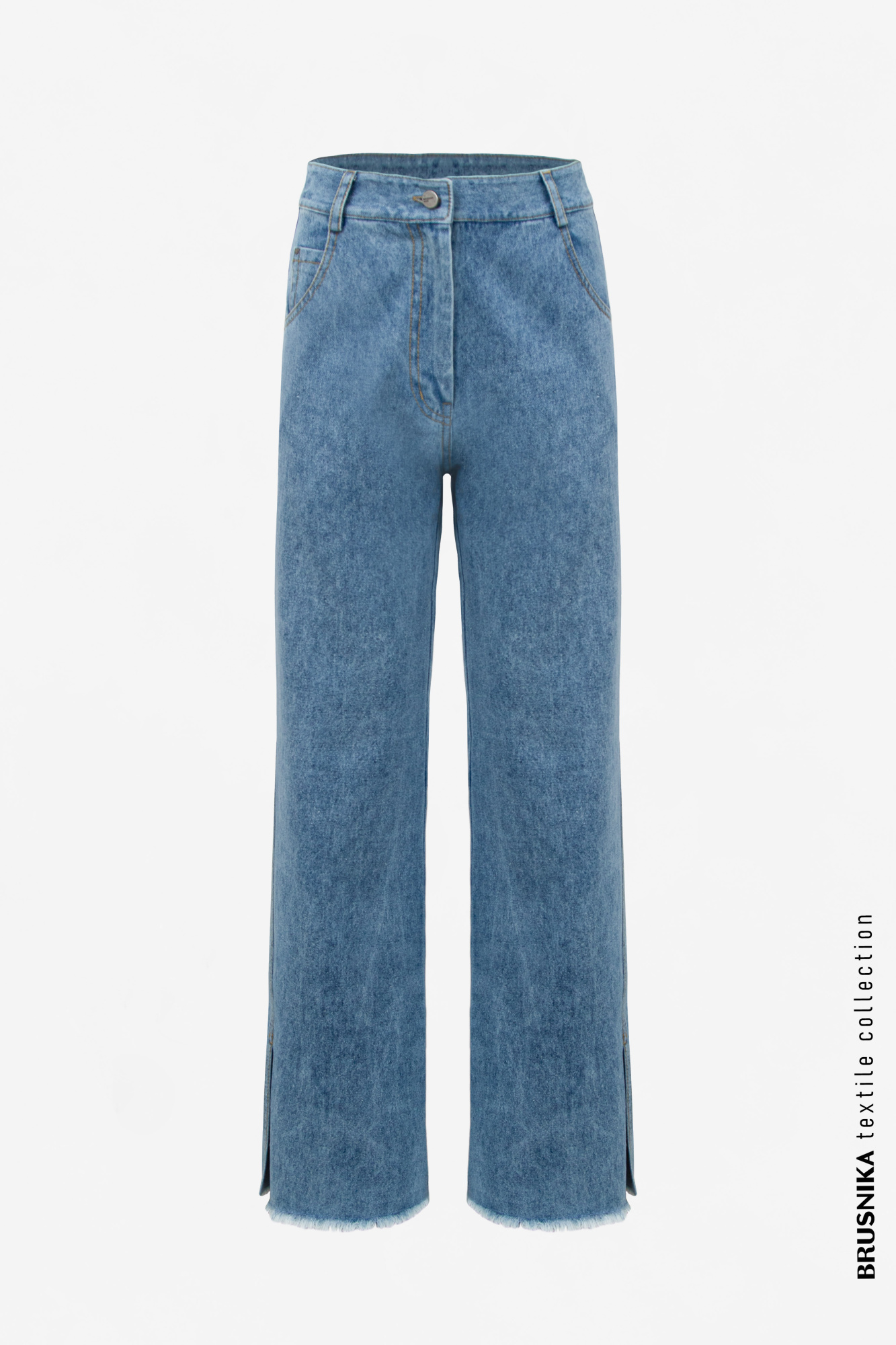 100% cotton bias fasten jeans.