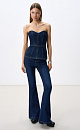 100% cotton flared jeans. A high-waisted, knee-length fit. Five pockets. Zip and metal button closure.