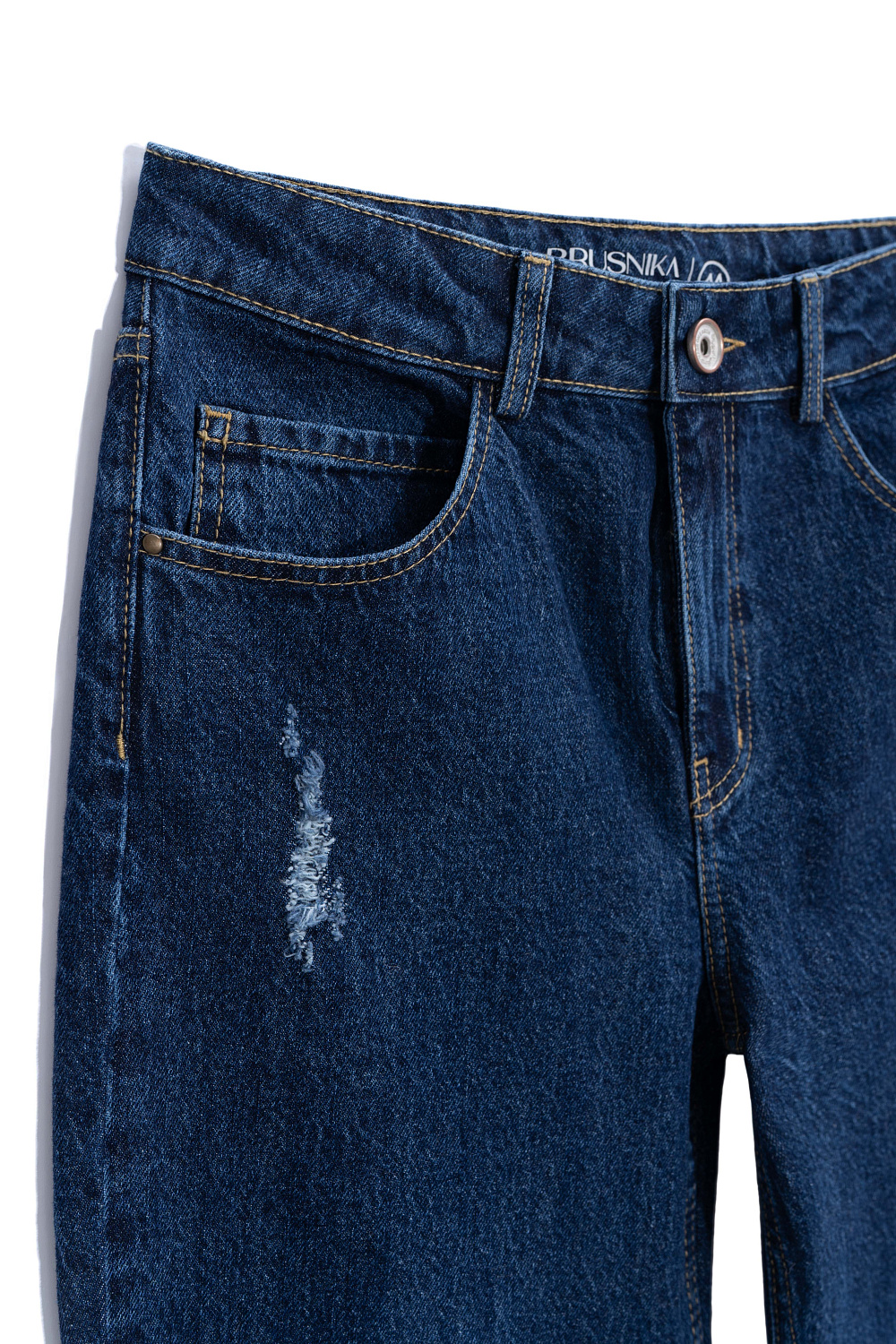 Straight-fit jeans with a slight flare. Model with slits in grunge style. Side and back pockets. Zip fastening and metal buttons.