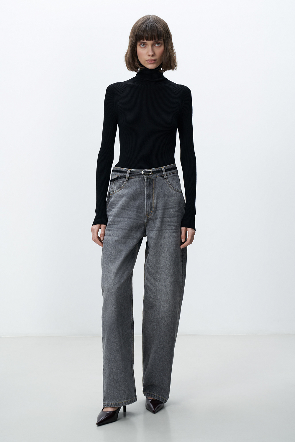 Straight-leg jeans made of 100% cotton. Relaxed, mid-rise model with five pockets. Zip and button closure.