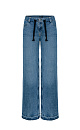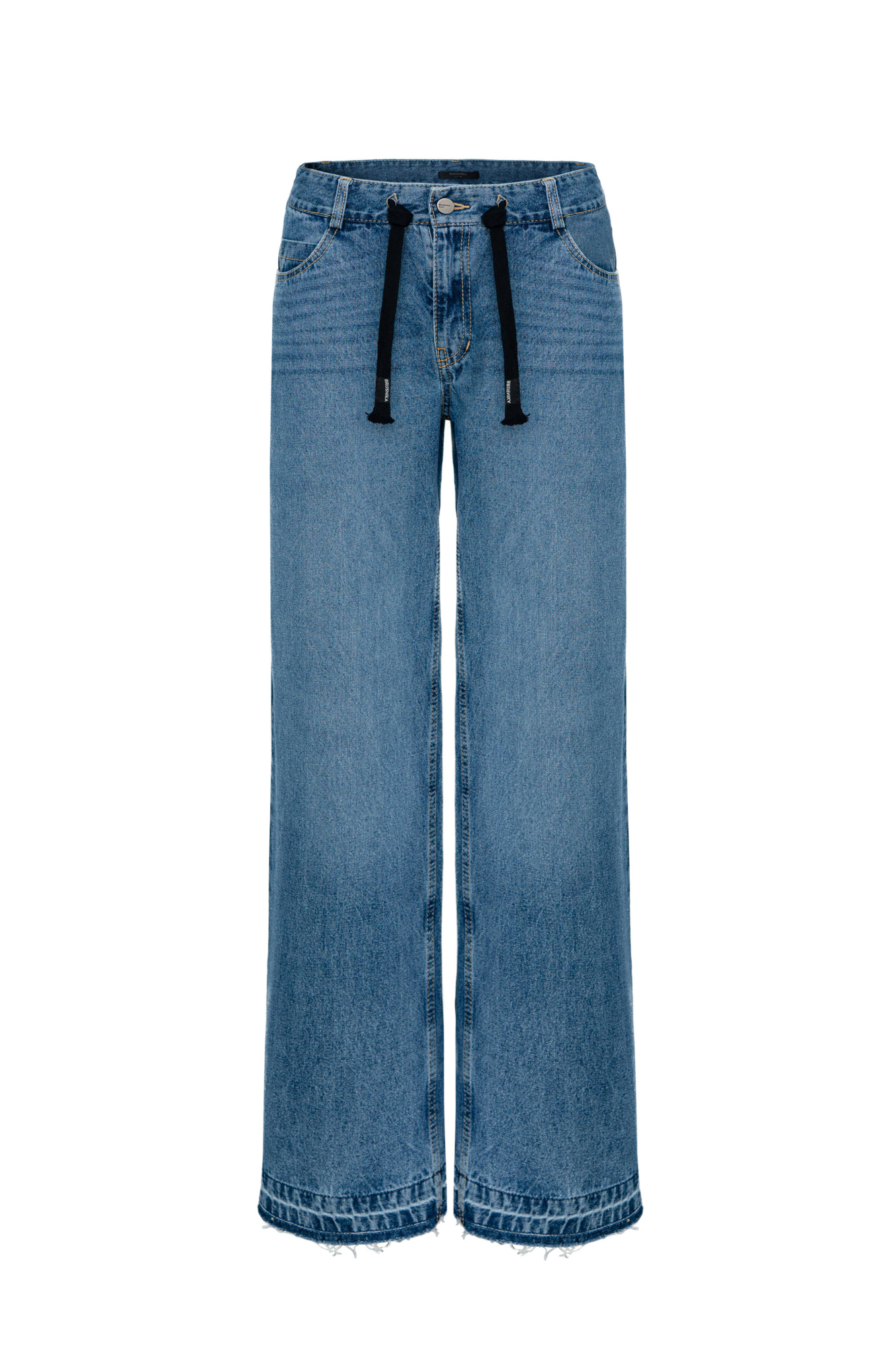 Straight-leg 100% cotton jeans with side pockets. Mid-rise model with branded drawstring and hidden zipper and button closure.