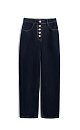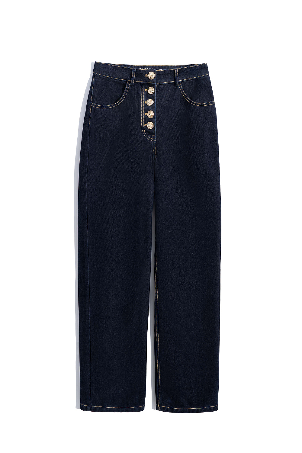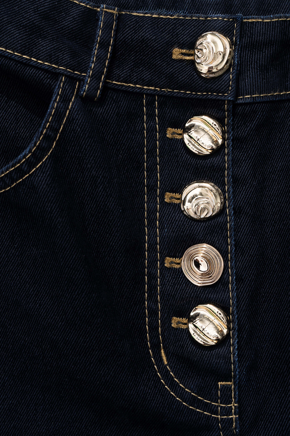 Flocked denim jeans - 100% cotton with an imitation velvet texture. Straight cut model with a high waist. Belt loops on the waistband. Two front, two back pockets. Fastening with large buttons.
